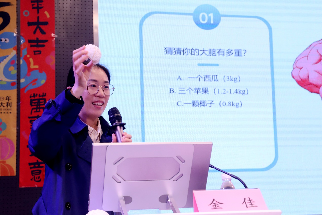 金佳教授围绕《探秘脑科学》主题,以故事和实例的方式,向学生讲解大脑的精妙结构、神经元信号的传递及记忆的形成机制。“科学家召唤令”互动环节更是激发了学生的好奇心与创造力,点燃了他们探索科学的热情。