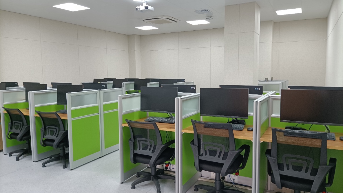 群体行为实验是从探究群体行为现象、规律的重要形式。通过群体实验,可以记录群体行为偏好、行为反应时间,还可同步搭配生理信号记录设备,记录生理、心理信息。广泛用于合作、博弈等领域的研究。目前本实验拥有专业群体实验室1间,面积共计98平米。其中群体行为实验室经过专业建设,可以满足25人同时参与信息行为实验研究的需要,并为同步搭载便携式、可穿戴式的神经设备开展研究提供了良好的基础。群体实验室每个位置配备有性能先进的成套电脑整机,配件有话筒、耳机、反应键盘等。