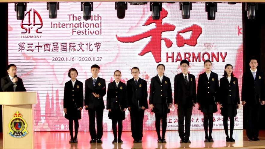 2020年11月27日下午,上外附中第34届国际文化节闭幕式在1号楼4楼艺术中心举行。出席本次闭幕式的校领导有党委书记李仁东,校长兼党委副书记杜越华,党委副书记韩怡,副校长杭虹利,校长助理黄桂兰,校长助理岳岚。