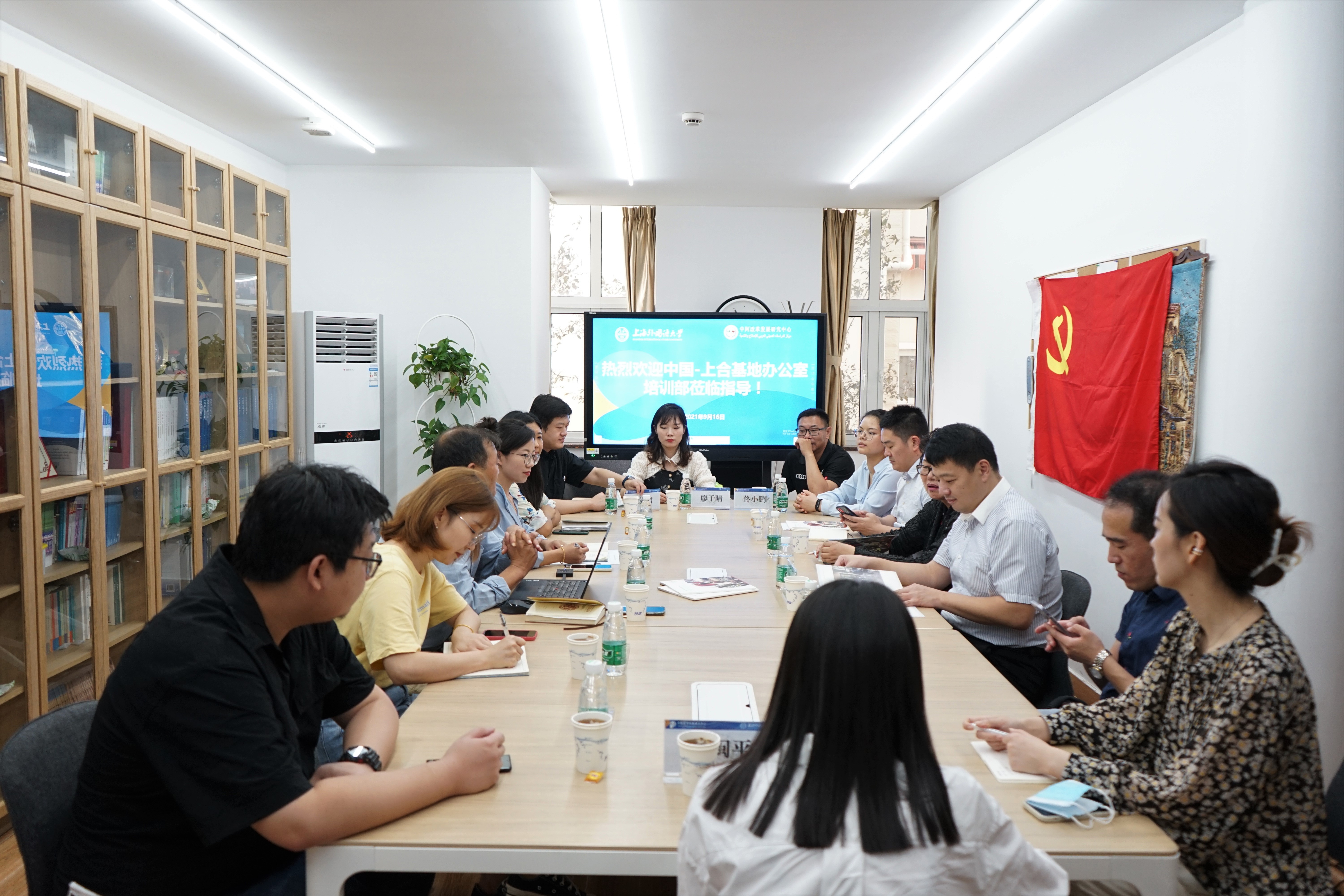 中心办公室副主任梁平安等与上合基地办公室培训部主任陈校等14人进行座谈交流。双方就双方组织架构、人员编制、组织规模与未来发展、线上培训等方面进行了深入的探讨和交流。