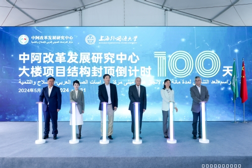 2023年6月,中阿改革发展研究中心大楼项目开工,大楼以“丝路印迹·多维互联”为设计理念,外观呈“人”字样,既贴合世界地图中陆上丝绸之路与海上丝绸之路的形状,又突出“人民至上”,强调中阿人民相知相亲,建设中阿命运共同体,推进人类命运共同体建设,未来将成为上外乃至松江区的新地标。