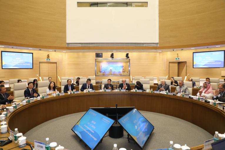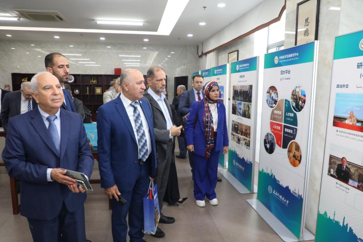 座谈前,考察团一行参观了中阿改革发展研究中心展览室,深入了解了中心自成立以来在研修培训、人才培养、智库研究、人文交流等方面的成果。
