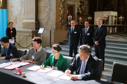 和国家留学基金管理委员会秘书长刘京辉(前排右二)共同与英方签署相关协议