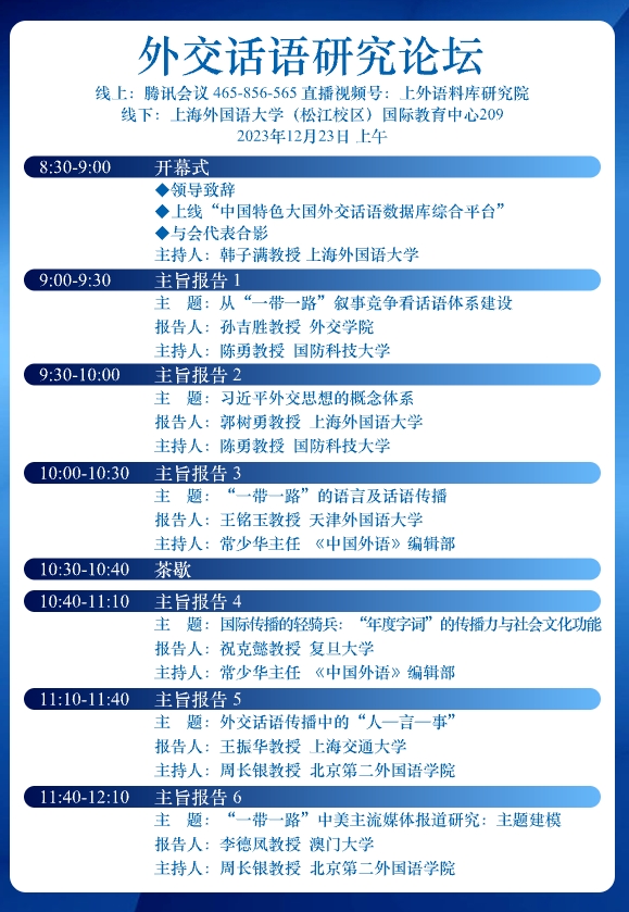 为进一步构建融通中外的中国特色大国外交话语,增进国际社会对于中国特色大国外交思想的理解和认同,提升中国国际话语权,增强中国文化软实力,开云电竞注册流程语料库研究院与胡开宝教授领衔的国家社科基金重大项目“中国特色大国外交的话语构建、翻译与传播研究”(17ZDA319)课题组拟定于2023年12月23日联合举办外交话语研究论坛。欢迎您拨冗参会。