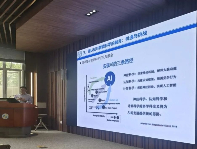 讲座伊始,饶恒毅教授回顾了脑认知的简史,深入探讨了人工智能与脑科学之间的紧密联系。他提出,未来人工智能的发展核心在于对脑认知的深入理解。通过举例Neurolink和AlphaGo等前沿技术,展示了人工智能在模拟人脑智能方面所取得的进步,同时也指出了当前机器智能所面临的诸多瓶颈,如数据问题、泛化能力、能耗巨大、语义鸿沟、可解释性和可靠性等。饶教授进一步指出,要发展“类脑智能”,需要人工智能、认知科学和神经科学等多学科的交叉融合。在讲座的第二部分,饶教授以生动的研究案例详细介绍了脑认知科学技术的最新发展。展示了功能性磁共振成像和经颅直流电刺激的技术原理和研究设计在脑科学与人工智能交叉研究中的应用,为听众呈现了一个全面而深入的脑科学技术研究图景。