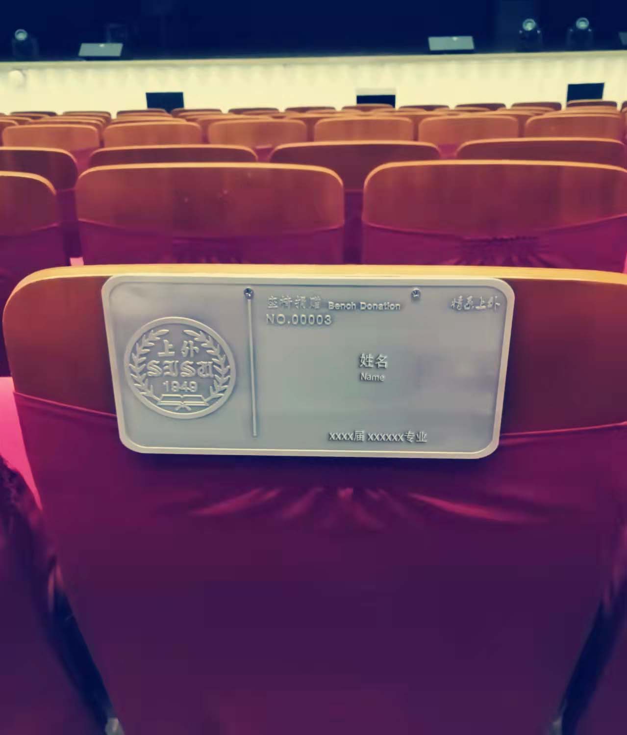 第一类是报告厅、大礼堂等建筑物内的座椅冠名认捐。本冠名项目接受个人或团体捐赠,每把座椅冠名金额为人民币 5000 元。捐赠类型分为四种,分别为:情系上外(个人);爱在上外(家庭,包括父母、兄弟姐妹、夫妻等);上外同窗(同学、班级等);上外情怀(亲友,上外及各附中校友的亲友)。