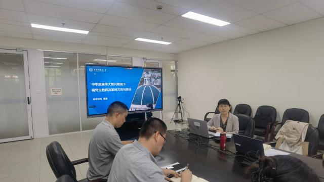 王欣副校长作总结发言。她指出,党员集中大课的学习让我们重温了中国共产党带领全国各族人民在四个历史阶段所取得的辉煌成就,了解历史才能看清未来的发展方向。我们正走在实现中华民族伟大复兴的征程上,每个人既是见证者,同时也是建设者。在当前日新月异的时代背景下,国家对于研究生教育提出了更高的目标与要求,作为学校主管研究生教育的职能部门,我们应主动而为,识变、应变、求变,做好前瞻性布局,同时加强与学校各院系、各职能部门和各高校之间的紧密联系,以实际行动为教育强国目标的实现贡献自己的力量。
