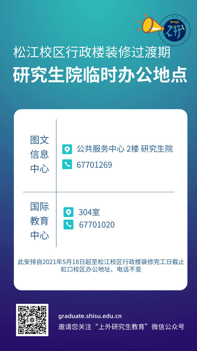 松江校区行政楼装修过渡期研究生院临时办公地点
