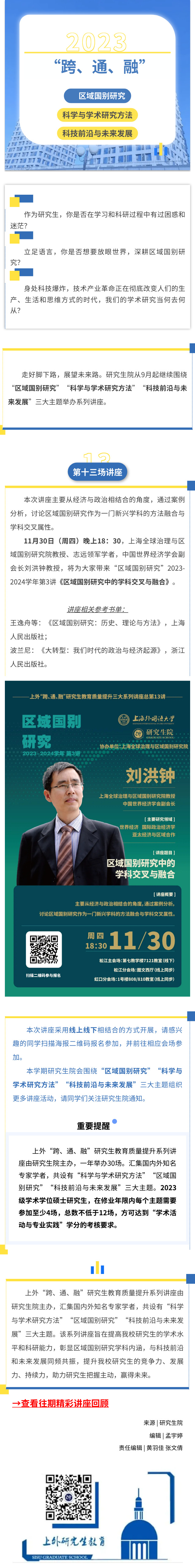 上外“跨、通、融”研究生教育质量提升三大系列讲座第十三场讲座开启报名