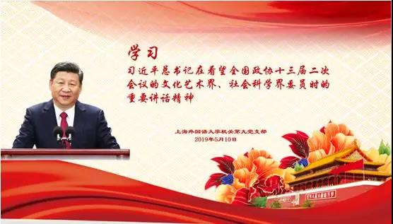 2019年5月10日,机关第九党支部(研究生院)组织支部全体党员学习习近平总书记在看望全国政协十三届二次会议的文化艺术节、社会科学界委员时的重要讲话精神。支部副书记江松同志主持本次组织生活。