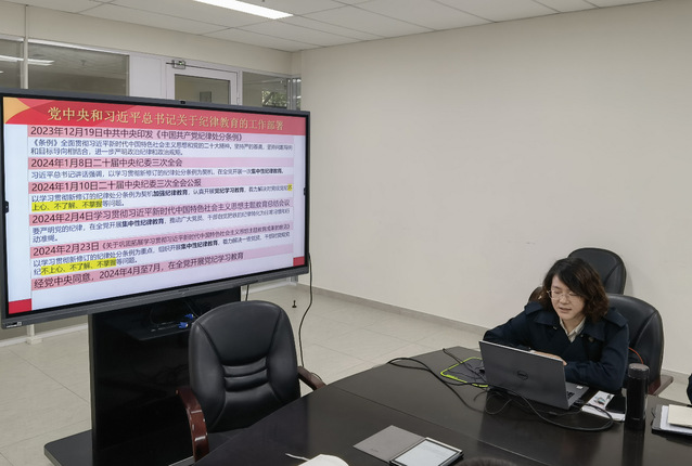 2024年4月23日上午,机关第十六党支部召开主题党日组织生活,学习贯彻新修订的《中国共产党纪律处分条例》,支部书记陈壮鹰同志主讲,支部纪检委员王孙轶同志做具体介绍。