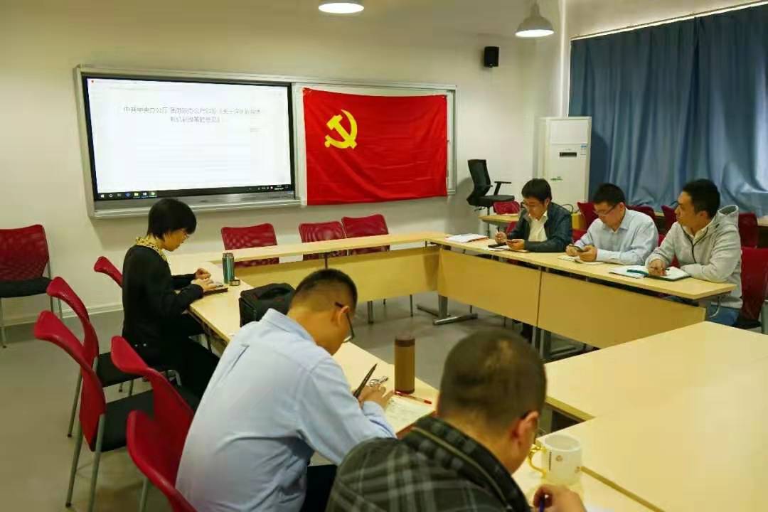2019年10月21日下午,机关第九党支部副书记江松,工青妇委员肖琳带领支部全体党员开展“不忘初心,牢记使命”专题读书班第四次集体学习活动。