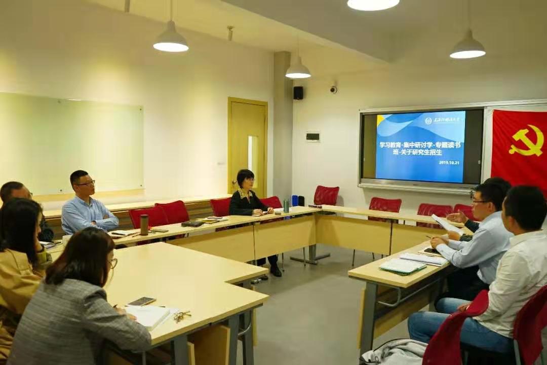 会上,全体党员通过集体研讨学专题读书班的形式,就 “关于教育体制改革、思政教育”、“双一流建设”、“习近平总书记关于从严治党的重要论述”结合研究生招生工作展开学习。党员们抒发对研究生教育培养体制的理解,明确要为党、为国家做好研究生教育工作的信念。