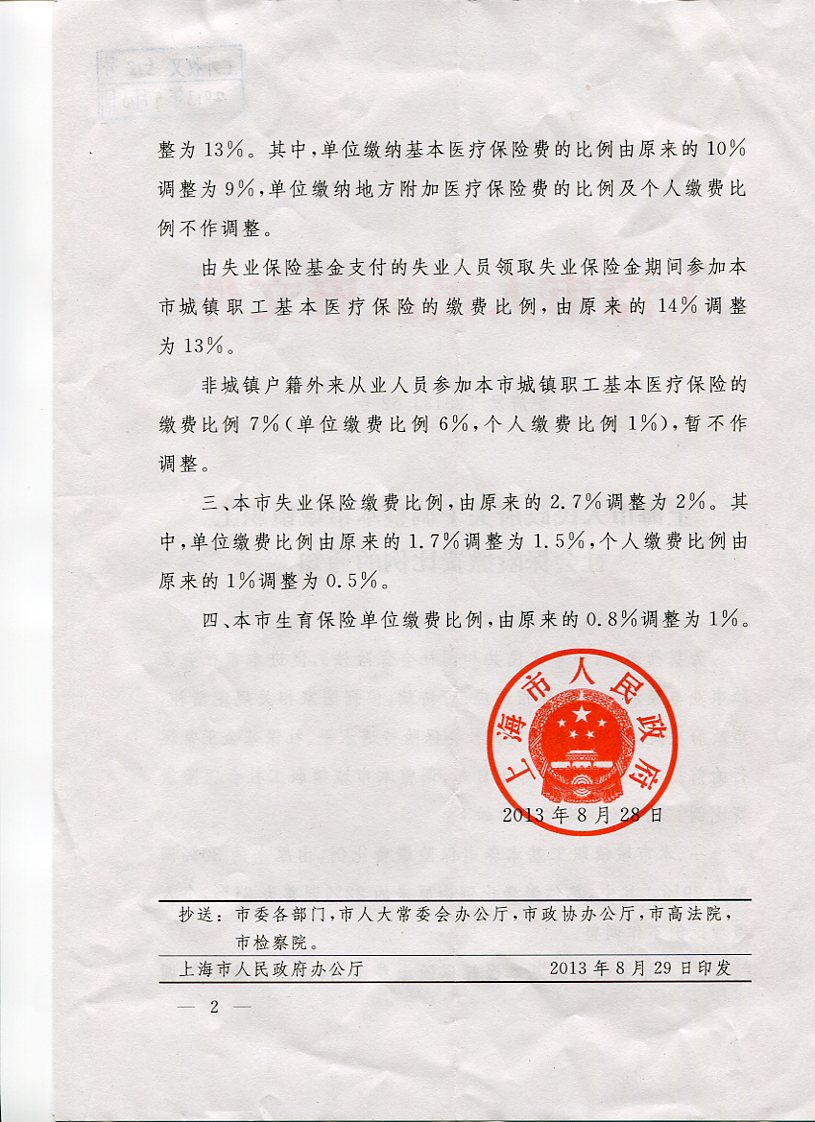 根据沪府发【2013】62号文关于上海市人民政府调整本市城镇职工社会保险缴费比例的通知,我校将从2013年10月起调整全校职工社会保险缴费比例,各项社会保险费率调整详见“调整本市城镇职工社会保险缴费比例一览表”。 附件:调整本市城镇职工社会保险缴费比例一览表 人事处劳资科 2013-09-23 联系人:杜佳维 联系电话:35372802