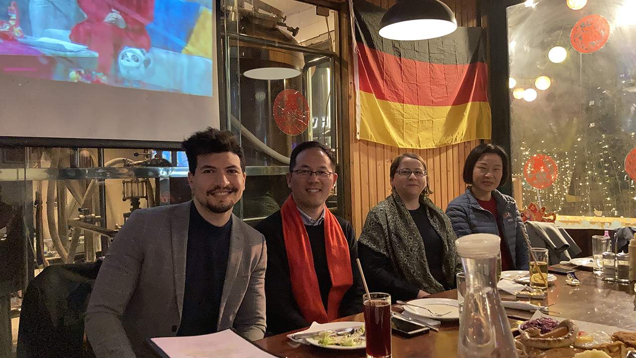 在上海老外街的一家德国餐厅,进入寒假不到两周后在沪新老外国专家再次重逢,人人喜笑颜开,来不及落座就迫不及待互致问候,开始畅聊各自在上海过春节的经历感受,有的专家受邀到中国同事家吃年夜饭,有的像本地人一样走亲访友,或观展看演出,也有独自一人行走在上海的大街小巷,感受中国春节年味和上海文化底蕴,还有专家选择利用宝贵的寒假时光,潜心钻研,撰文写书,做翻译。