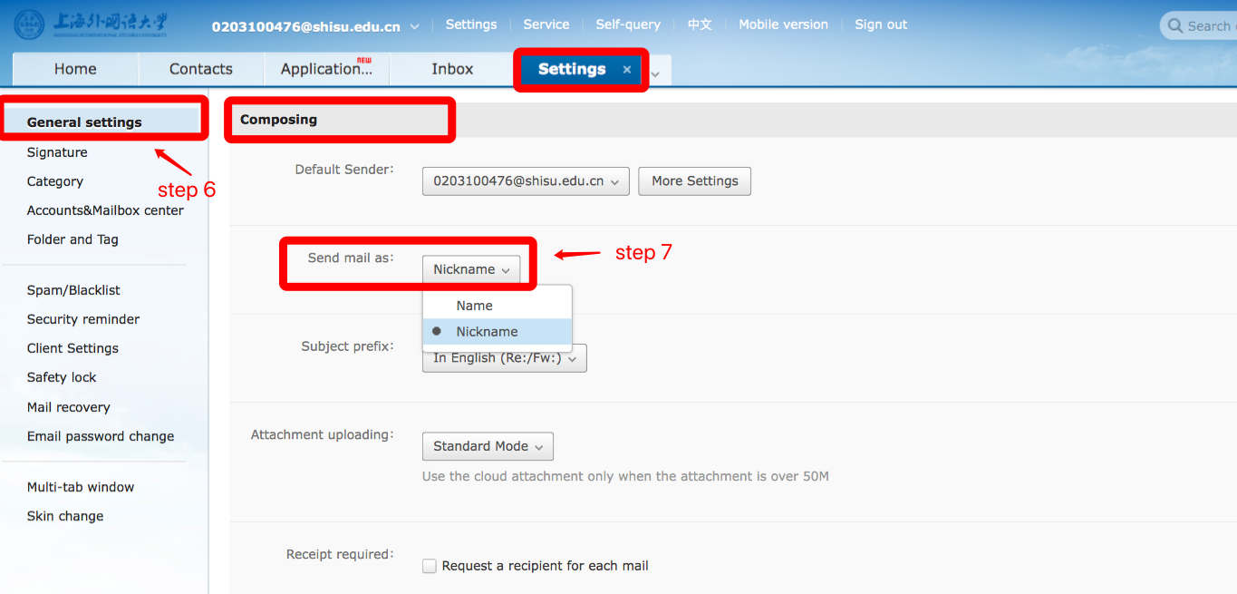If there is no one to do it for you, you can take photos of the front and back side of your ID card after contacting the mailbox administrator by phone in advance at and send to admin@shisu.edu.cn. The administrator will review and confirm within 3 working days and reply the new password by email.