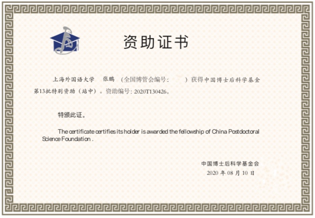 日,上外中东研究所博士后研究人员张鹏(导师:刘胜湘)获中国博士后科学基金第