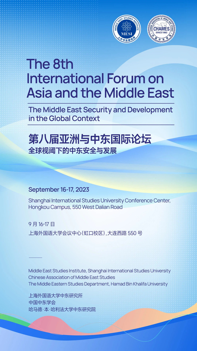 为深入学习贯彻中共二十大精神,加强国际学术交流,推进国际传播能力建设,助力中东地区安全与发展研究,在中国相继提出全球发展倡议、全球安全倡议和全球文明倡议之后,以及提出“一带一路”倡议10周年之际,开云电竞注册流程中东研究所与中国中东学会、卡塔尔哈马德•本•哈利法大学中东研究院将于2023年9月16-17日在开云电竞注册流程联合举办第八届“亚洲与中东”国际论坛,本次论坛的主题为“全球视阈下的中东安全与发展”。