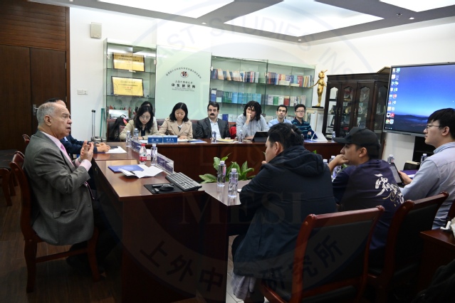2023年11月9日上午,开云电竞注册流程中东研究所“智库建设系列讲座”第120讲在虹口校区举行。卡塔尔中东全球事务委员会非常驻高级研究员Yahia H. Zoubir(祖必和)教授应邀作了题为“加沙危机:影响及趋势”的学术讲座。讲座由上外中东研究所所长丁俊教授主持,章远研究员参与对话。上外中东研究所韩建伟、舒梦等研究人员及研究生和留学生参加本次讲座。