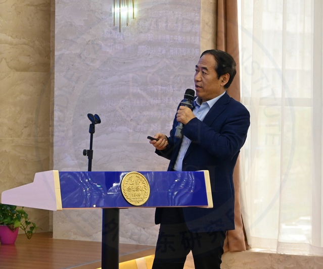 (图为丁俊所长做基地建设及重大项目总体情况报告)