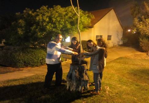 但是我们所看到的街道上,还是一片平和,一切正常。颠簸的山路上,似乎看到了家乡的影子。四十分钟后,终于到达目的地,电影结束后希伯来大学农学院的一位中国博士带我们去他的学校参观。校园里满是新奇的植物,独具特色的建筑,我们似乎忘记了关于防空警报的一切事情,晚上十一点还开着闪光灯和这边的博士师兄与师姐拍照。在大学门卫的认真排查后,才安全出校门。