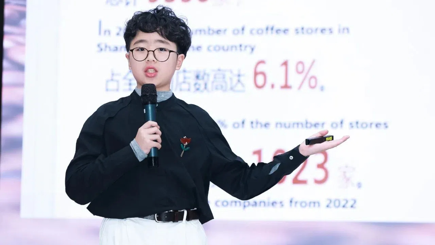 小学组一等奖获得者上海市实验学校附属东滩学校的朱墨同学介绍了上海的咖啡文化,在他看来这体现了城市的多元与国际化。他表示,能用英语为更多人介绍上海,虽然具有挑战但是感到无比开心和自豪。