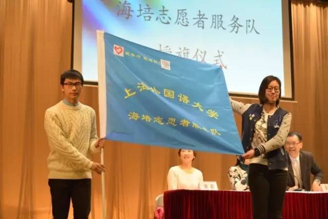 2016年3月30日,上外出国留学人员培训部及海外合作学院(海培)志愿者服务队正式成立。副院长朱华平为志愿者服务队授旗。新成立的海培志愿者服务队隶属院团委,是由学院热心志愿服务的优秀青年组成的公益性社团组织,涵盖英国、澳洲、日本等项目,是一支政治素质好、服务能力强的高素质队伍。