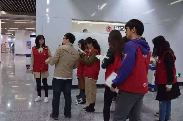 2016年4月23日,我们英国项目20班的一行五人来到汉中路地铁站参加了长约三小时的地铁志愿者活动。大家的时间观很好,都在规定的时间准时地到达了集合的地点。主管老师周立天向我们发放了志愿者专用导向图,上面具体的描绘了地铁站的地图。拿到手后,我们仔细地阅读了地图,并记住了周立天老师嘱咐给我们的乘客询问最多的几项。