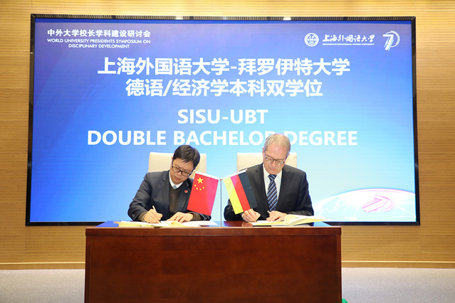学科布局不断优化,学科集群逐渐形成。以外语学科为核心,政治学、新闻传播学、管理学等学科交叉融合的学科群逐渐形成。2016年至今,学校增设了工商管理一级学科博士点,以及国际商务、新闻与传播硕士等两个专业学位授权点。首次自主增设的国别与区域研究、语言数据科学与应用等两个二级交叉学科点,进入教育部公布的高校交叉学科名单。增设比较文学与跨文化研究、全球传播、政治学理论等二级学科点。跨语种、交叉型专业显著增多。此外,学校新增工商管理博士后科研流动站,国际工商管理学院通过AMBA国际认证;上外-拜罗伊特大学德语/经济学项目、上外-巴黎三大等中外联合培养项目成功实现跨学科联授本科、研究生双学位;其中上外-拜罗伊特大学德语/经济学项目成为全国首个中外颁发文、理两个不同学位证书的项目。