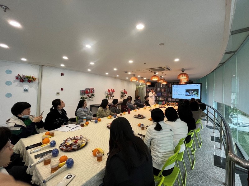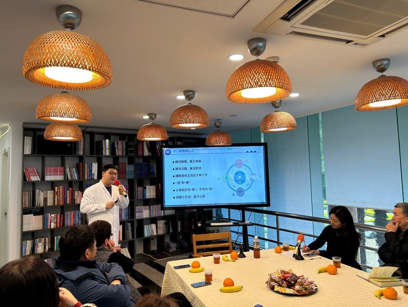 中医五行学说认为,五行(木、火、土、金、水)之间存在相生和相克的关系,这些关系是相互依赖和平衡的。朱博士以通俗易懂的语言,深入浅出地为大家讲解中医五行的内涵,以及中医与国学、日常生活和保健的关系,并通过介绍十二时辰养生法,帮助大家梳理身体的“值班表”,从而实现“事半功倍”的养生。朱博士的讲解幽默风趣,金句频出,大家听得津津有味,意犹未尽。科普讲座结束后,朱博士现场为女教师望闻问切,针对大家关心的健康问题一一耐心解答。整场活动持续了近三个多小时。