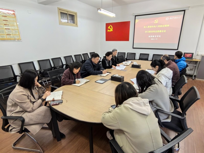 为巩固深化主题教育和党纪学习教育成果,纵深推进全面从严治党,根据校党委部署和要求,继续教育学院3月19日召开深入贯彻中央八项规定精神学习教育传达部署会议。会议由学院党总支书记吴慧主持,学院班子全体成员、党总支委员、教工党支部书记及支部纪检委员等参加。