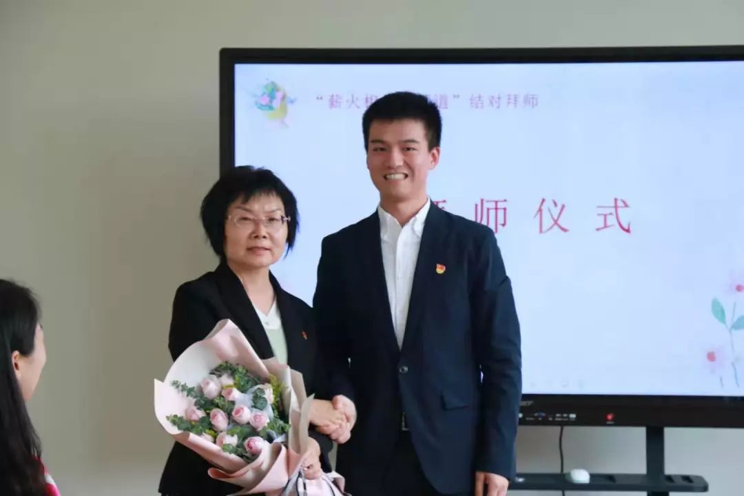之后各组结对教师依次上台,新老师向自己的带教老师敬献鲜花,承诺见贤思齐,传承师道。带教老师则回赠礼物,希冀新教师牢记初心,记录成长,书写精彩教育人生。