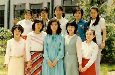 戴老师记性惊人地好,记得我留烫头短发,冬天里喜欢穿毛尼格子短大衣. 其实是80年代人们所拥服饰有限,女生们都没几件好看的衣服,一穿就几天甚至一季,以后才知道衣服要天天翻行头的。学生食堂好菜数量有限,哪有现在大食堂的各种菜都选花了眼。早晨如果上满四节课,食堂里就只剩白菜烂糊肉丝了。上海同学可以周末回家打牙祭,外地同学难得上街换换口味。后来学校开放了教工食堂,偶尔可以吃鱼香肉丝。西餐馆物美客少,是招待宾客的地方。那时上外名声远扬的是西点部,所谓“上外点心一枝花”。出炉的糕点奶椰香飘出老远,和南京路上泰康食品店的不差上下。如今沪上已经找不到这种品质的桃酥,椰丝球了。”