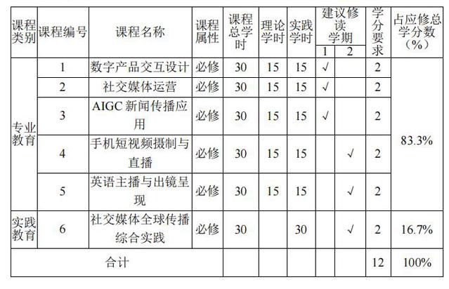 该微专业在网络与新媒体专业教学基础之上,针对国际社交媒体环境,根据行业前沿发展趋势设计系列课程开展相关能力培养,旨在培育能够在国际社交媒体舆论场产生影响力的新型全球化人才。