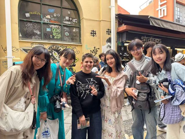 第二组同学从雅典国立考古博物馆到雅典的街头巷尾,先后采访了经营二十载的传统希腊餐厅经理、橄榄木手工艺品店合伙人及拥有半世纪历史的首饰品店工作人员。行程中,同学们在Flea Market偶遇曾于上外访学的希腊学生Christina。这场校友相逢,让文明交汇的探讨变得更为生动。