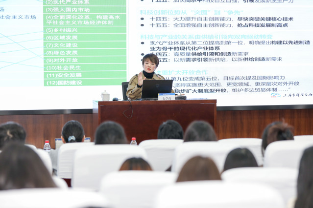 在讲座的最后部分,朱学彦提出,“十五五”时期上海国际科创中心建设将迎来“四重动力”驱动:强国使命引领、科学规律推动、产业升级牵引、国际竞争倒逼。她表示,上海要以“战略定力”面向2035,以“战略敏捷”响应2030,在人工智能、集成电路、生物医药、通用人工智能等领域实现“补短锻长”。她还强调要深化教育、科技、人才一体化改革,构建“科教协同、产教融合”的育人机制,培养更多战略科学家、科技领军人才与青年创新团队。