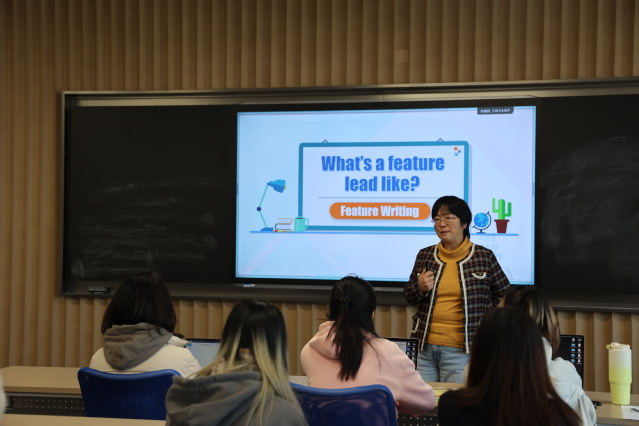 刘佳老师的《中英新闻标题差异比较》课程,通过近期“全运会”的新闻实例引出中英新闻标题的差异,继而从标题长度、细节、句式、修辞等多个维度对二者进行了全面细致的比较。在讲解知识点的基础上,刘佳老师进一步开展多项中英标题转换练习,通过实践与互动,帮助同学们把握语言表达的差异,实现准确转化与灵活创新。授课中,她特别强调了新闻写作的“受众意识”,提示同学们主动思考海外受众的知识背景与议题关注,培养国际视野与跨文化交流能力,以全球可理解的方式讲好中国故事、传播中国声音。