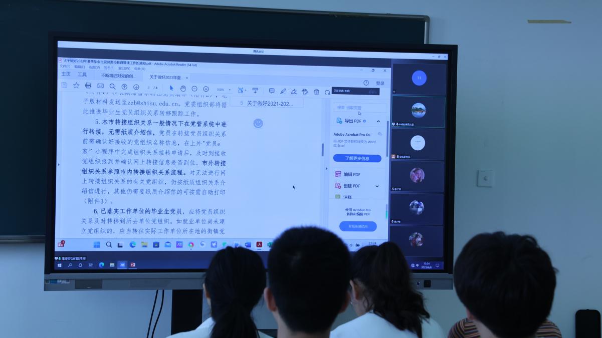 学院专职组织员朱鸣华老师向全体毕业生党员同志讲解了毕业生党员党组织关系转接流程的注意事项并解答了毕业生党员们提出的问题。