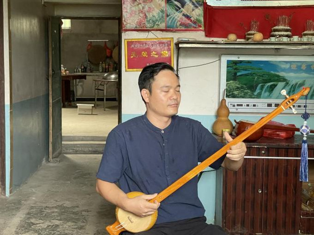 在非物质文化遗产壮族天琴艺术项目代表性传承人李绍伟家中,国新班师生深入了解了天琴的起源与变迁,并欣赏了传统天琴的吟唱方式。