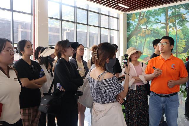 在中国—东盟(崇左)水果交易中心,凭祥国贸公司的副总经理刘强为国新班师生讲解了水果交易中心的整体规划以及凭祥特色的“边民互市贸易”。