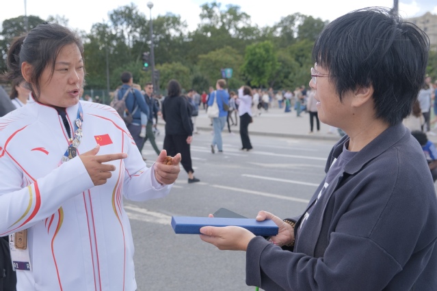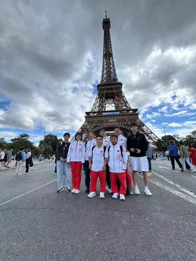 在考察场馆设施的同时,调研小队在挂着五环的埃菲尔铁塔下,意外遇见了中国残奥会田径代表团的六名运动员。其中,站在前排右侧第一位的是男子F41级标枪银牌得主孙鹏祥,他在决赛中投出44.72米的成绩。后排右三是来自无锡的姚娟,她在女子铅球F64级决赛中以12.53米的成绩获得冠军。运动员们透露,他们已经在巴黎停留了20天,紧张备战和比赛。此次中国残奥田径队取得了历史最佳成绩,他们顽强拼搏、为国争光的精神深深鼓舞了调研团的师生。