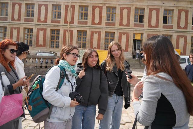 曹帅老师则带领另一部分成员前往凡尔赛宫。凡尔赛宫是欧洲最大的王宫,也是欧洲古典主义园林艺术的杰作。巴黎奥运会期间,凡尔赛宫的皇家星形广场被改造为马术比赛的专用区域。调研团抵达时,凡尔赛宫正在举办以“马”为主题的特别展览,纪念品商店里也展示了大量与奥运马术相关的产品。出于对历史和环境的尊重,用于马术和现代五项赛事的设施将在奥运结束后被拆除。一位受访的法国女士认为,尽管如此,这种将比赛设施与历史场馆结合的做法有损历史的严肃性。“凡尔赛宫的光华被尘埃遮蔽了。”而另一位受访的英国游客则持相反意见,认为这样的结合是个好主意。“不仅能看比赛,还能参观著名的历史建筑,实在是一举两得的好事。”还有一位法国先生表示,这样的安排有助于展示法国的竞技体育,同时展现其优雅与艺术。