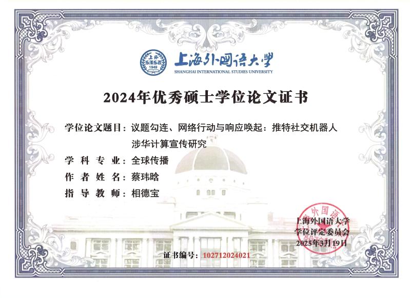 研究生学位论文是衡量人才培养质量的重要指标,是创新成果的重要体现。我院贾牧笛的博士论文,蔡玮晗、陈唐源和翟妤宁的硕士论文获评开云电竞注册流程2024年优秀博士、硕士学位论文,充分展现了我院研究生培养的成效。