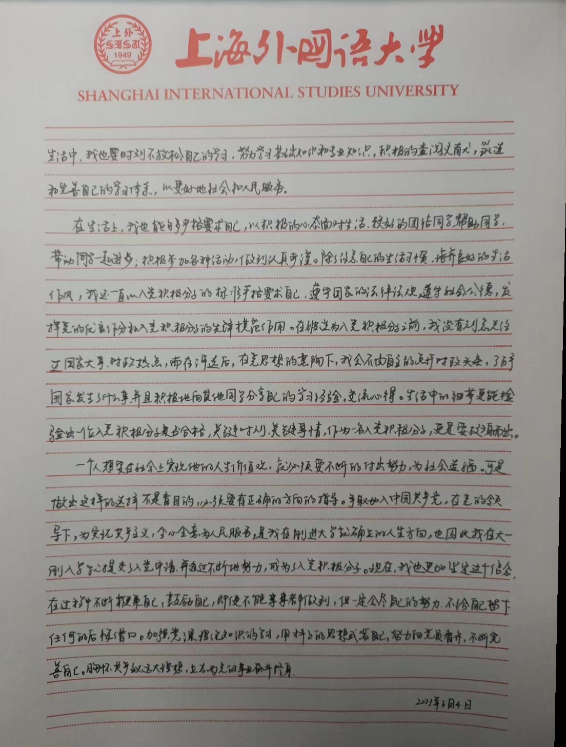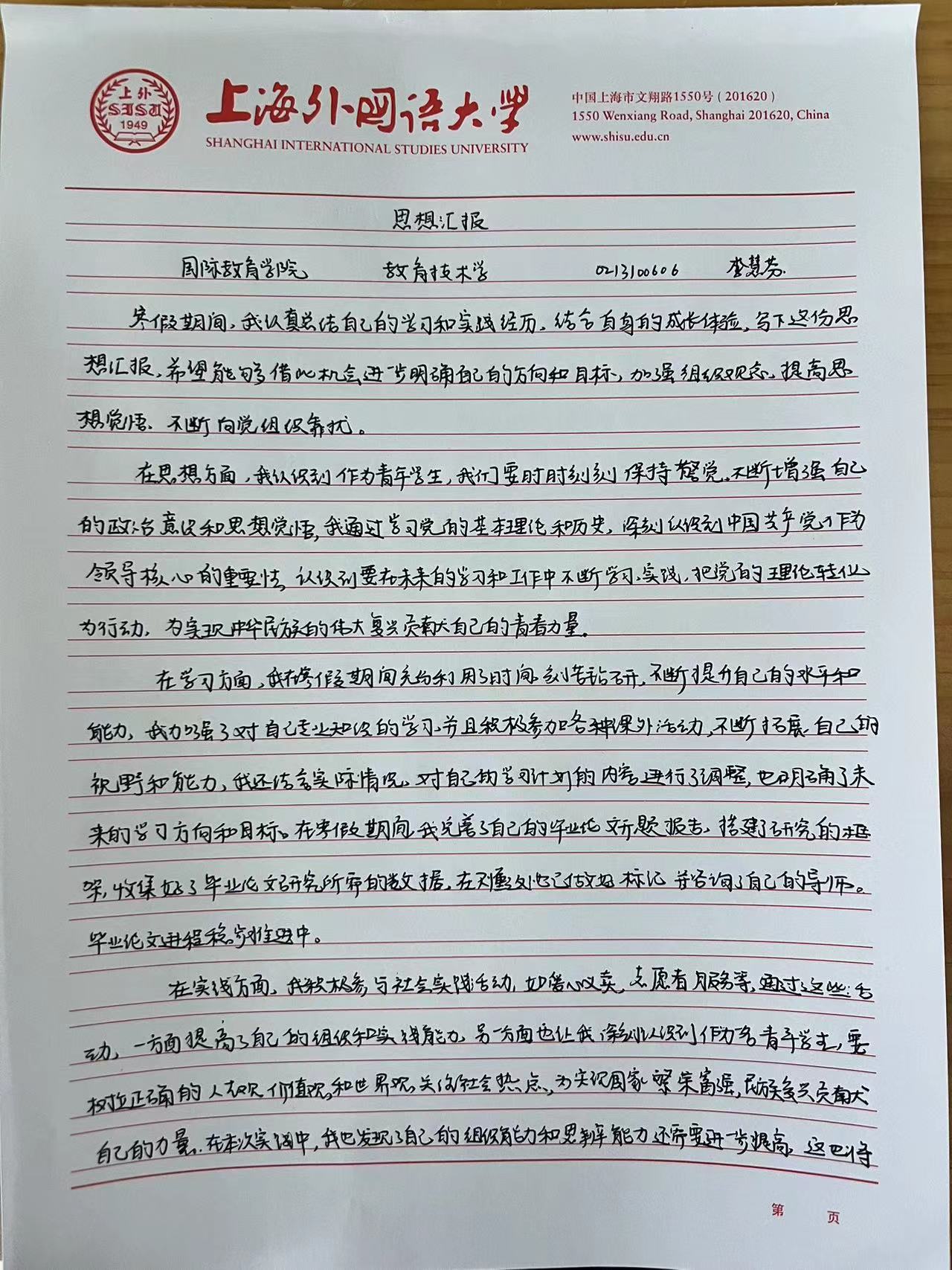 结合“四个一”寒假红色主题系列活动和寒假期间的所思所想所感所悟,各党支部和团支部组织党员和积极追求入党的同学认真撰写了思想汇报,回顾了自己的成长与收获,提升了自己的思想觉悟,以不断向党组织靠拢。