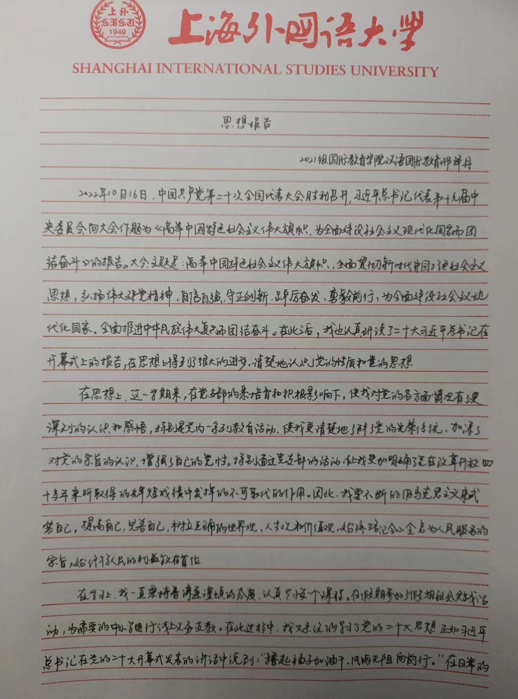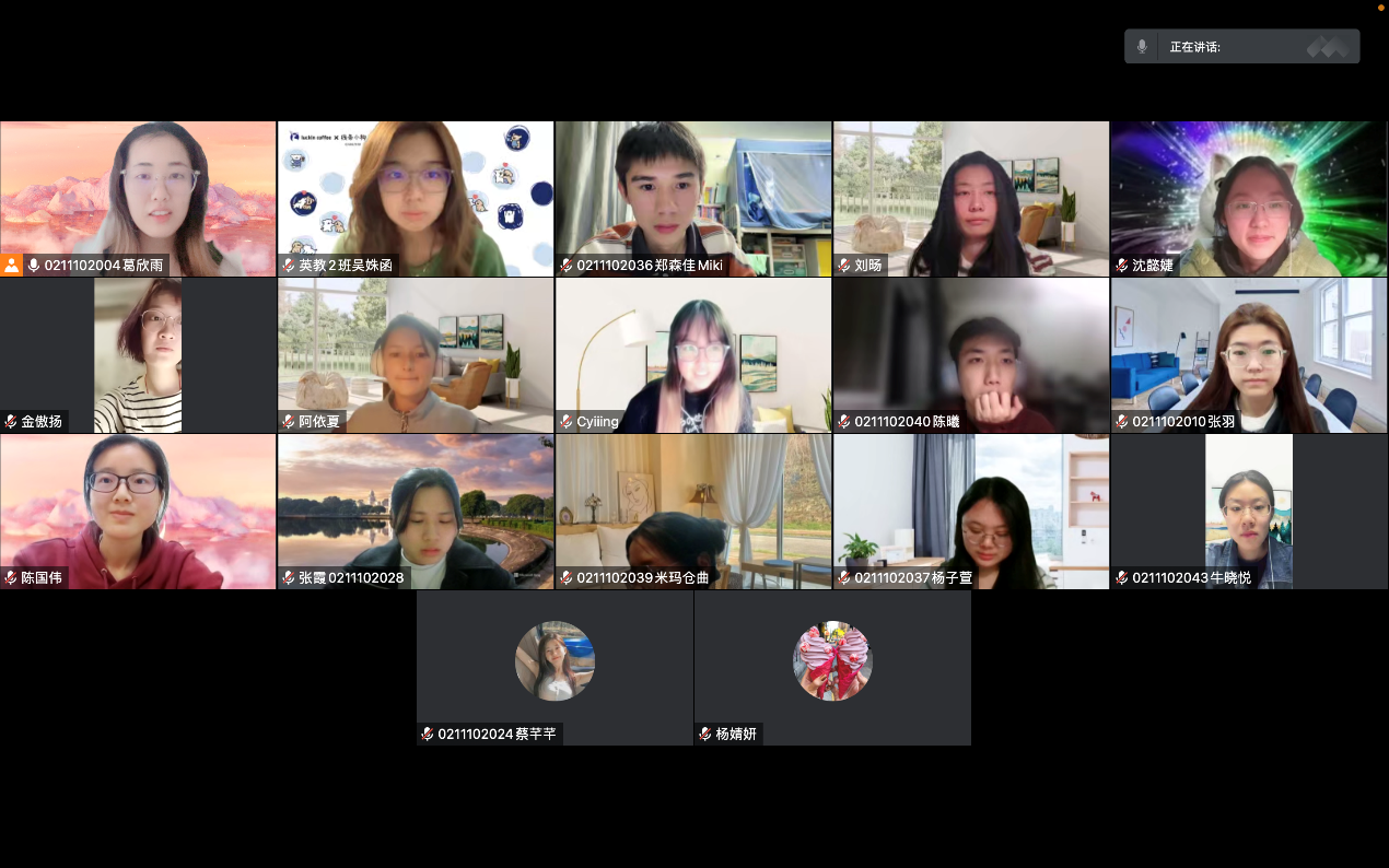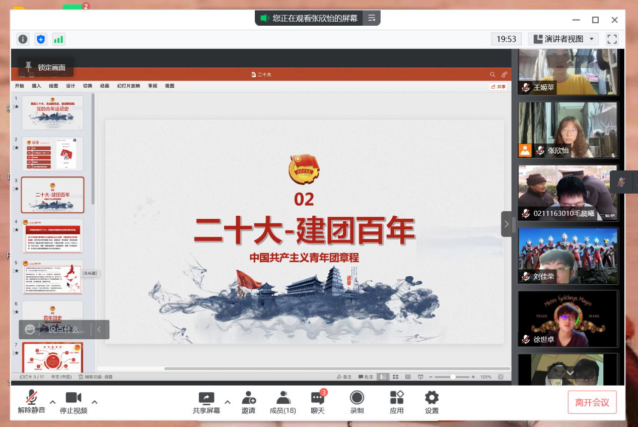 2021级英语教育专业2班团支部在线一同学习了党的二十大报告,认真学习体悟了二十大报告的精神。同学们深刻认识到,当代中国青年生逢其时,施展才干的舞台无比广阔,实现梦想的前景无比光明。