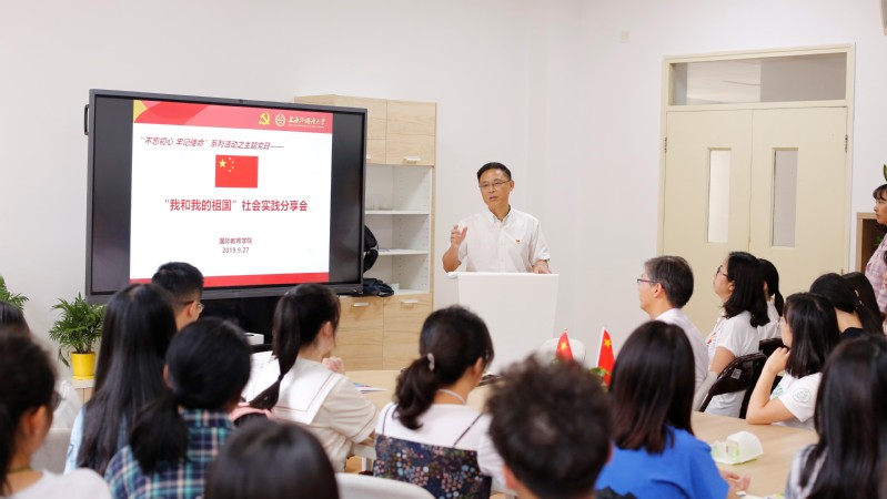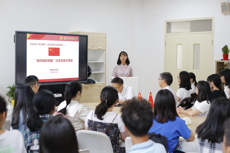 929日,在全校开展“不忘初心 牢记使命”主题教育活动之际,国际教育学院教工党支部和学生党支部联合举办了一次主题党日活动,本次活动主题为“我和我的祖国”,邀请国际教育学院暑期社会实践团队进行成果分享,教师党员和学生党员聆听分享并进行互动交流。