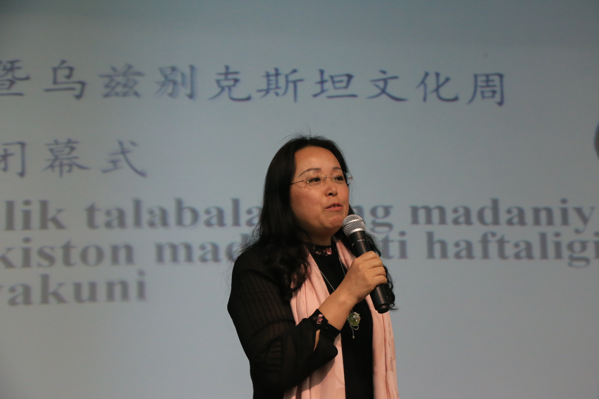 Badiiy chiqishlar nihoyasiga yetgach Rossiya, Sharqiy Yevropa va Markaziy Osiyo instituti Markaziy Osiyo tillari fakulteti dekani U Ayjun so‘zga chiqib hafta davomida tashkil etilgan tadbirlar haqida to‘xtaldi: 16-noyabrda o‘zbek tili ta’lim yo‘nalishining rasmiy ochilishi va O‘zbekiston madaniyati haftaligining boshlanishiga bag‘ishlangan tadbir o‘tkazildi, 17-noyabrda to‘rtinchi “Buyuk ipak yo‘lidagi umuminsoniy va milliy qadriyatlar: til, ta’lim va madaniyat” xalqaro ilmiy anjuman o‘tkazildi. 19-noyabrda O‘zbekiston Respublikasining Shanxaydagi Bosh konsulxonasi konsuli A. Ulugbekov va talabalar o‘rtasida davra suhbati o‘tkazildi, 20-noyabrda o‘zbek tili o‘qituvchisi X. Musurmanov talabalarga ma’ruza o‘qidi, bugun madaniyat haftaligining so‘nggi tadbiri – xitoy va o‘zbekistonlik talabalar madaniy uchrashuvi. U Ayjun O‘zbekiston madaniyati haftaligining muvaffaqiyatli o‘tkazilishida universitet va Rossiya, Sharqiy Yevropa va Markaziy Osiyo instituti boshliqlarining yordami va qo‘llab quvvatlashlari katta ekanligini takidladi. U Ayjun, shuningdek, tadbirlar o‘tkazilishida o‘z yordamini ayamaganligi uchun O‘zbekiston Respublikasining Shanxaydagi Bosh konsuli Agzamxodjayev Saidkamol va u kishining hamkasblariga minnatdorchilik bildirdi.