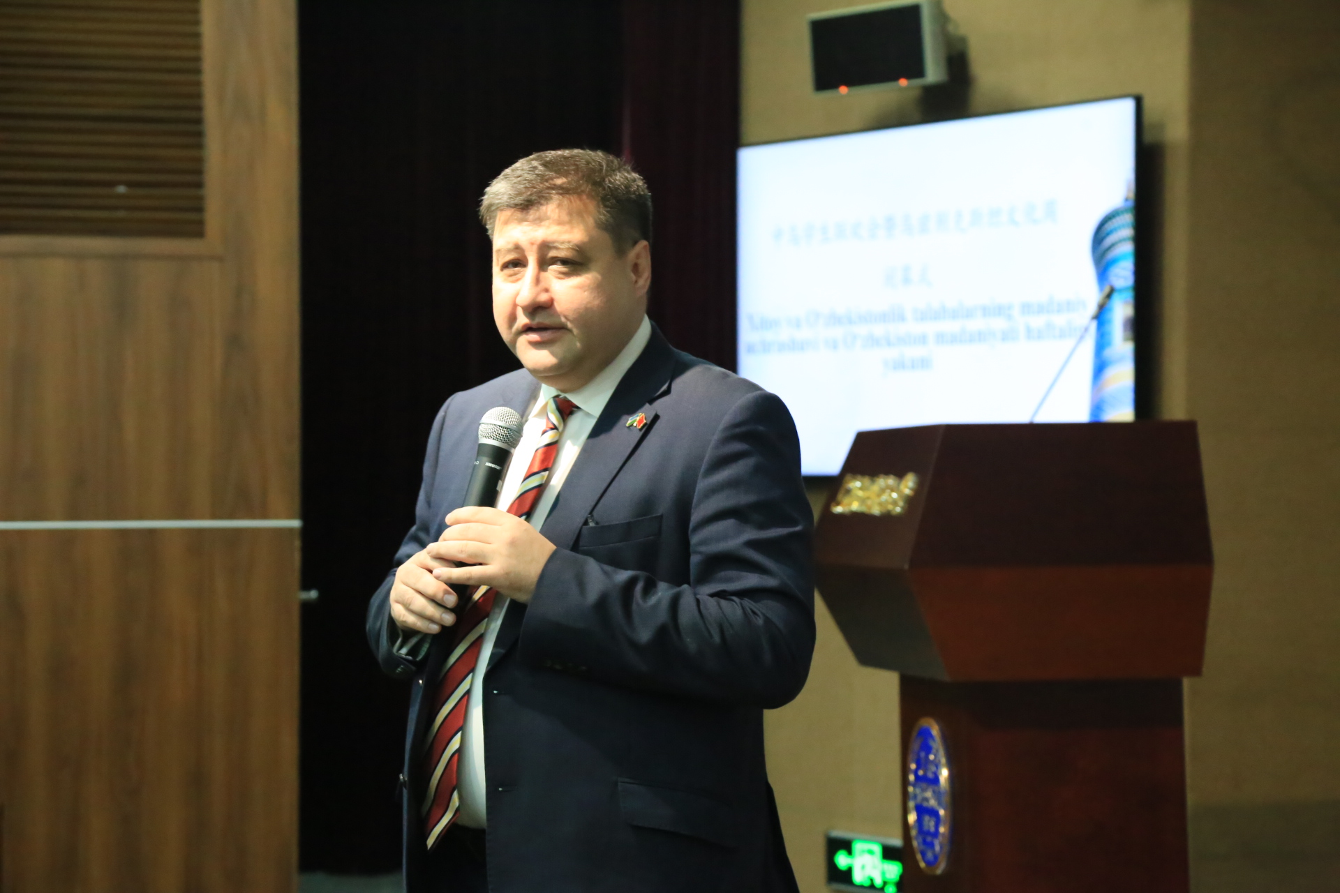 Shundan so‘ng bosh konsul ham so‘zga chiqdi. U Shanxay chet tillar universiteti taklifi bilan ShHTning navbatdagi bosh kotibi professor Vladimir Norov va boshqa delegatsiya a’zolari bu safargi tadbirlarda ishtirok etganliklarini aytib o‘tdi. Bosh konsul janoblari professor V.Norov va Bosh konsulxona nomidan o‘zbek tili yo‘nalishining ochilish marosimi va O‘zbekiston madaniyati haftaligini tashkil etishdagi mehnatlari uchun Shanxay chet tillar universiteti rahbariyatiga o‘z minnatdorligini bildirish bilan bir vaqtda universitetda ochilgan O‘zbekiston tadqiqotlar markazi va universitet ustoz va talabalari hamkorlikda tarjima qilishgan Navoiyning g‘azallar to‘plamini yuqori baholadi.