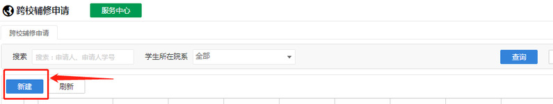 (2)进入跨校辅修申请页面后选择“新建”按钮