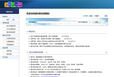 2.汉语语料库:例如语料库在线 (http://www.cncorpus.org/)、北京大学中国语言学研究中心语料库 (http://ccl.pku.edu.cn/corpus.asp)、北京语言大学语料库 (http://bcc.blcu.edu.cn/)等